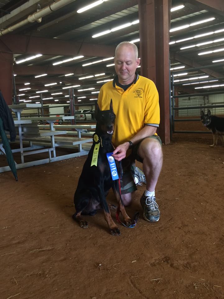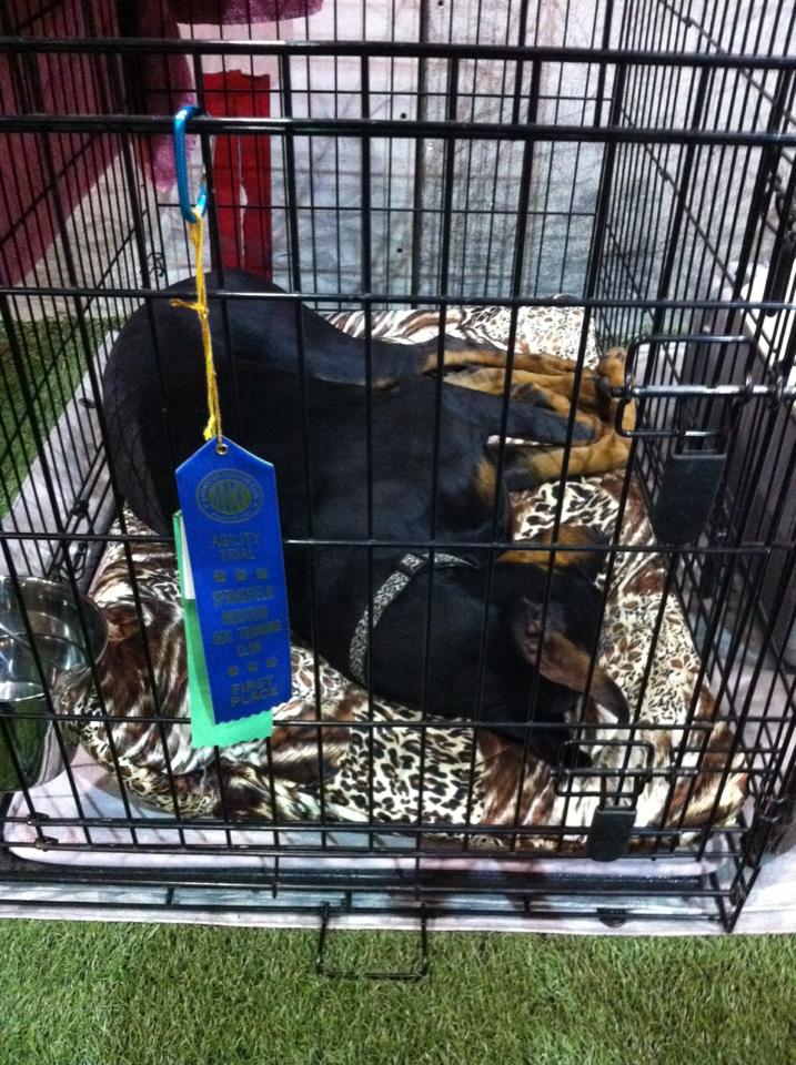 Dare is now AKC Ch. BJF Truth or Dare OA AXJ after picking up her third AXJ leg with another class win the day after the 4th of July. Congratulations to her and her owner/trainer/handler Pam Harris of Wichita on earning FIVE agility titles from AKC since the Doberman National in limited trialing and with mostly class wins!