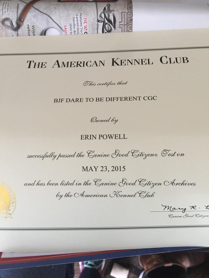 Dare and Pam went to the 2014 DPCA Nationals to make her agility debut and ended up not only qualifying at all three trials but also did well enough to earn class placements in all three as well (two seconds and one third)! So we are proud to announce that Dare is now AKC Ch. BJF Truth or Dare NAJ. We’re looking forward to her having a long and fruitful career in agility and earning her ROM when a WAE is available in the area.